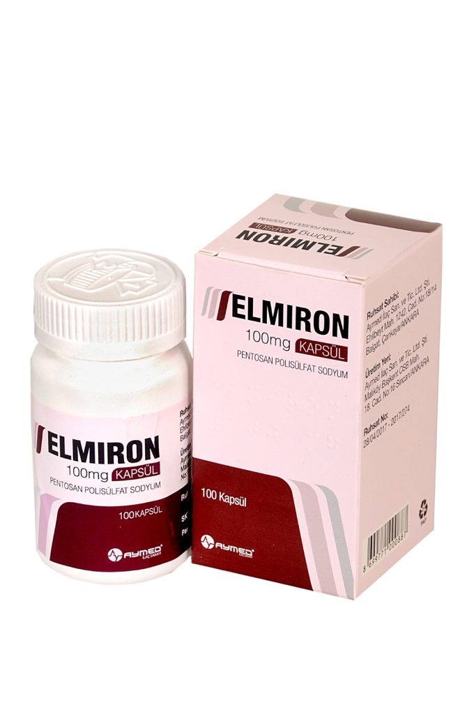 şeklinde sunulmuştur. Her bir kutu 100 kapsül içerir. ELMİRON, interstisyel sistit (ağrılı mesane sendromu; sık idrara çıkma ve pelvis diye tabir edilen leğen kemiklerinin sardığı boşluk içinde devamlı hissedilen ağrı ve rahatsızlık hissi) tedavisinde kullanılır.